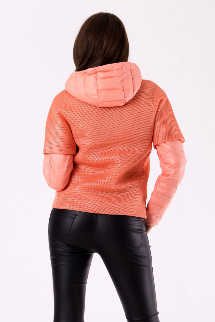 Jacket with detachable sleeves.