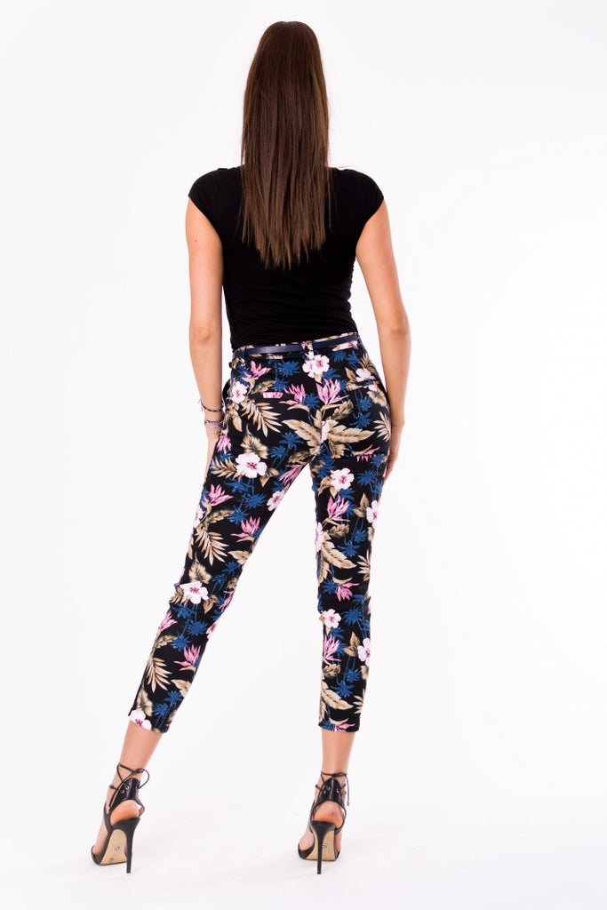 Elegant trousers, smooth+ belt. Motive - flowers.
