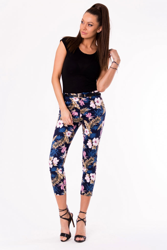 Elegant trousers, smooth+ belt. Motive - flowers.